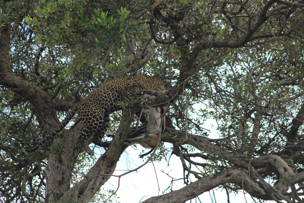 Leopards often stash food in trees to keep it away from other predators.